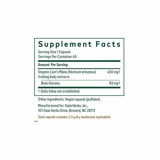 Lion's Mane Mushroom - 60 Capsules | Gaia Herbs