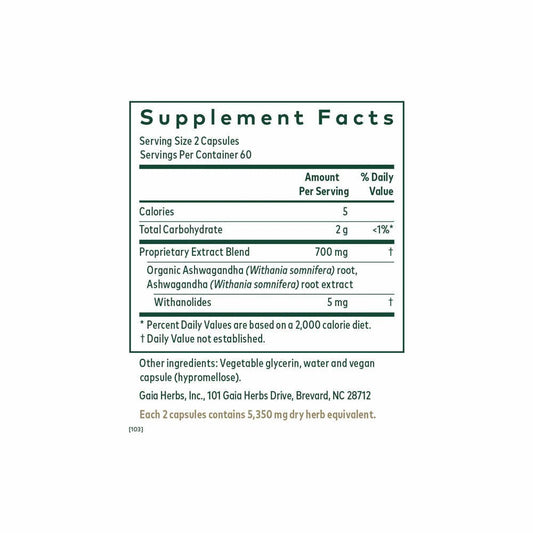 Ashwagandha 700 - 120 Vegan Liquid Capsules | Organic Stress Relief & Energy Balance by Gaia Herbs