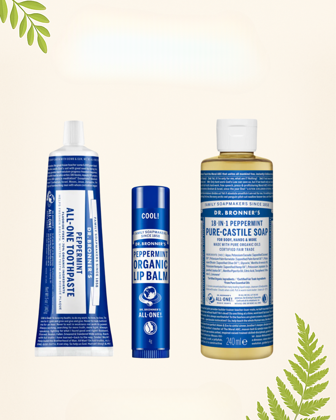 Mint Essentials Bundle: Toothpaste + Lip Balm + Castile Soap